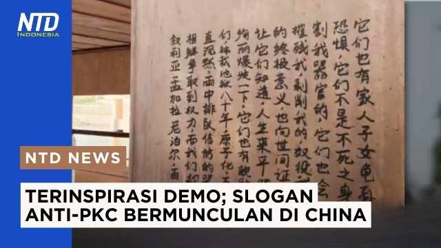 Dua slogan besar diproyeksikan di sebuah gedung di universitas di China selatan, hanya beberapa hari sebelum parade militer China. Slogan itu berbunyi, “Hanya tanpa Partai Komunis, akan ada China baru.” Serta, “Tiada lagi kebohongan, kami ingin kebenaran”. “Tiada lagi perbudakan, kami ingin kebebasan”.